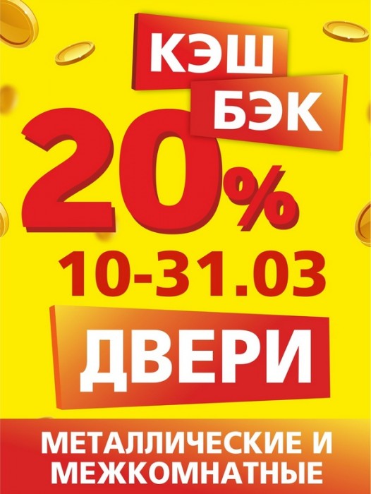 ПРИШЛО ВРЕМЯ КЭШБЭКА В БОБЕРСТРОЙ!Только с 10 по 31 марта при покупке металлических и межкомнатных дверей начислим кэшбэк 20% на бонусную карту!