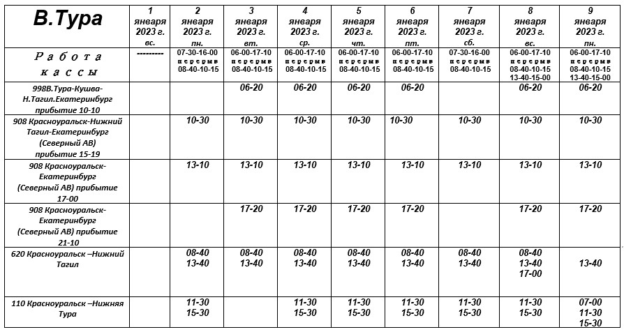 Расписание автокассы г. Верхняя Тура в предпраздничные и выходные дни