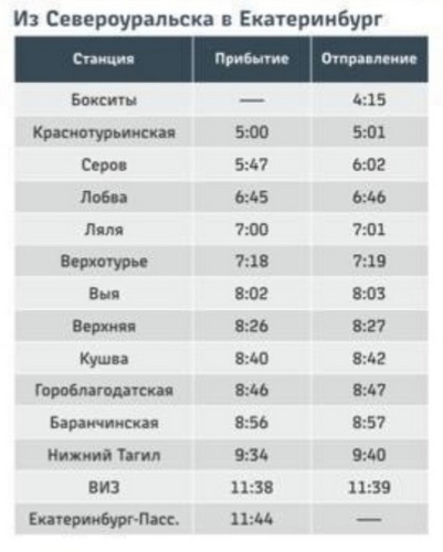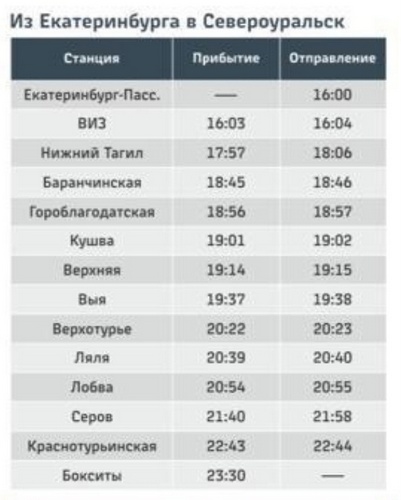 Поезда будут отправляться ежедневно по маршруту Екатеринбург-Серов-Бокситы (г. Североуральск).. Отправление (время местное):