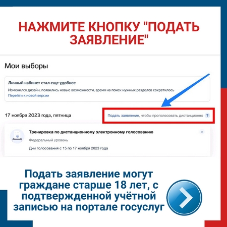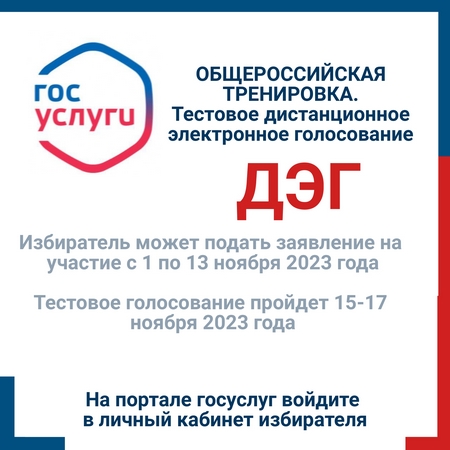 Избиратели имеют возможность принять участие в тестовом дистанционном электронном голосовании (ДЭГ). Информируем, что дистанционное электронное голосование - это дополнение к обычной форме голосования, это возможность выбора избирателя идти ли на избирательный участок или проголосовать, в удобное время не выходя из дома. С 1 по 13 ноября 2023 года стартует прием заявлений на участие в тестовом ДЭГ. Рассказываем в карточках, как подать заявление на портале госуслуг с мобильного устройства (в приложении «Госуслуги»). Само тестовое дистанционное электронное голосование пройдет 15-17 ноября 2023 года на платформе ПТК ДЭГ. Приглашаем принять участие в тестовом ДЭГ. Инструкция для подачи заявлений:
