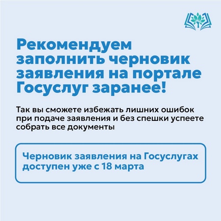 Как записать ребёнка в первый класс?Первая волна подачи заявлений в первый класс начинается с 1 апреля, однако заполнить «черновик» заявления на портале Госуслуг можно уже с 18 марта.
