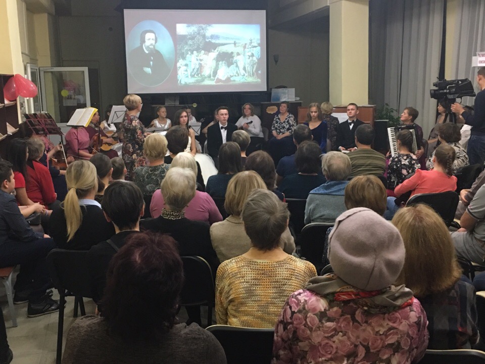 В зале звучала музыка, а ведущая вечера – Любовь Охрыткова с чувством говорила о творчестве великих людей: музыкантов, поэтов, художников.