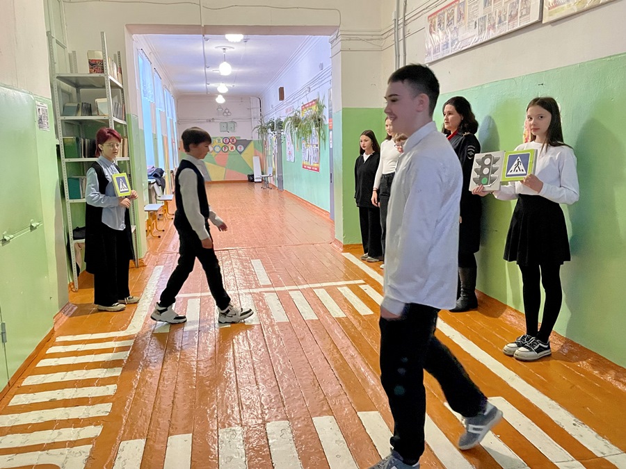 Сотрудники Госавтоинспекции напомнили школьникам основные правила безопасного поведения на дороге, повторили правила перехода проезжей части по пешеходному переходу.