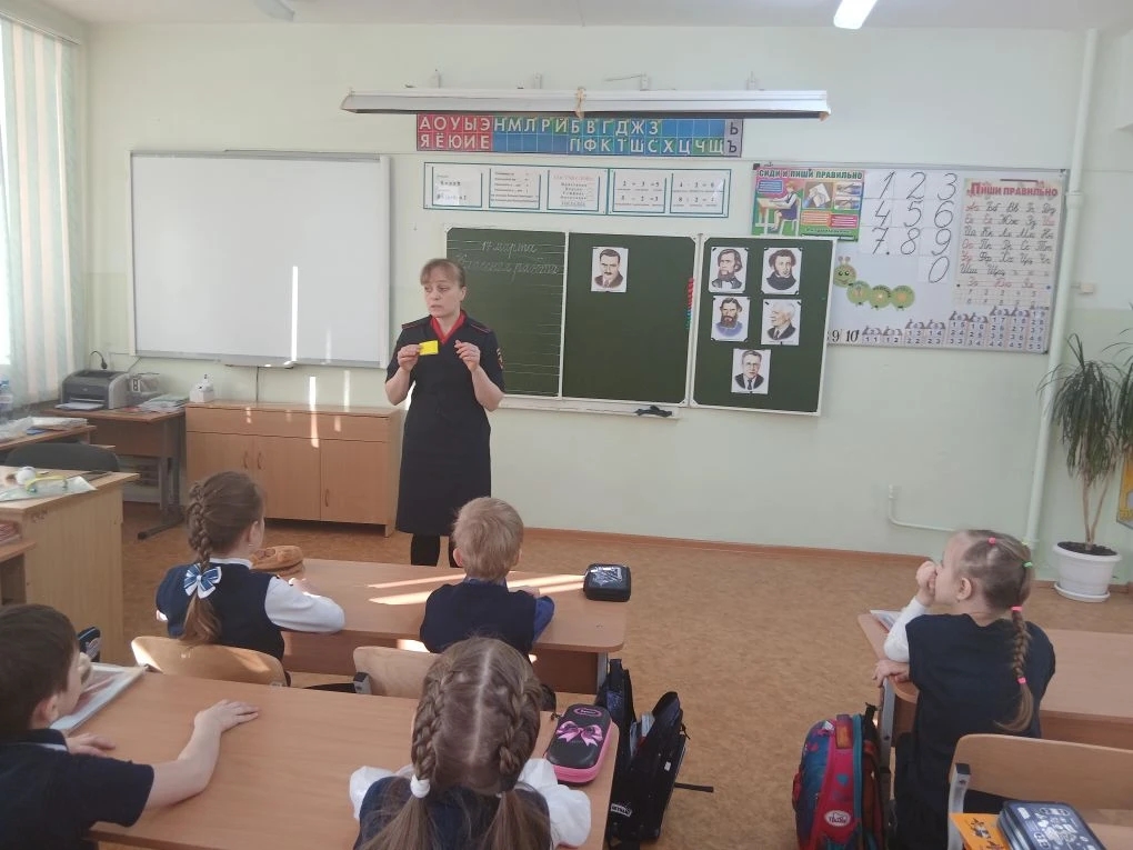 В преддверии весенних каникул инспектор по пропаганде безопасности дорожного движения посетила учащихся первого класса школы № 1 города Кушва.
