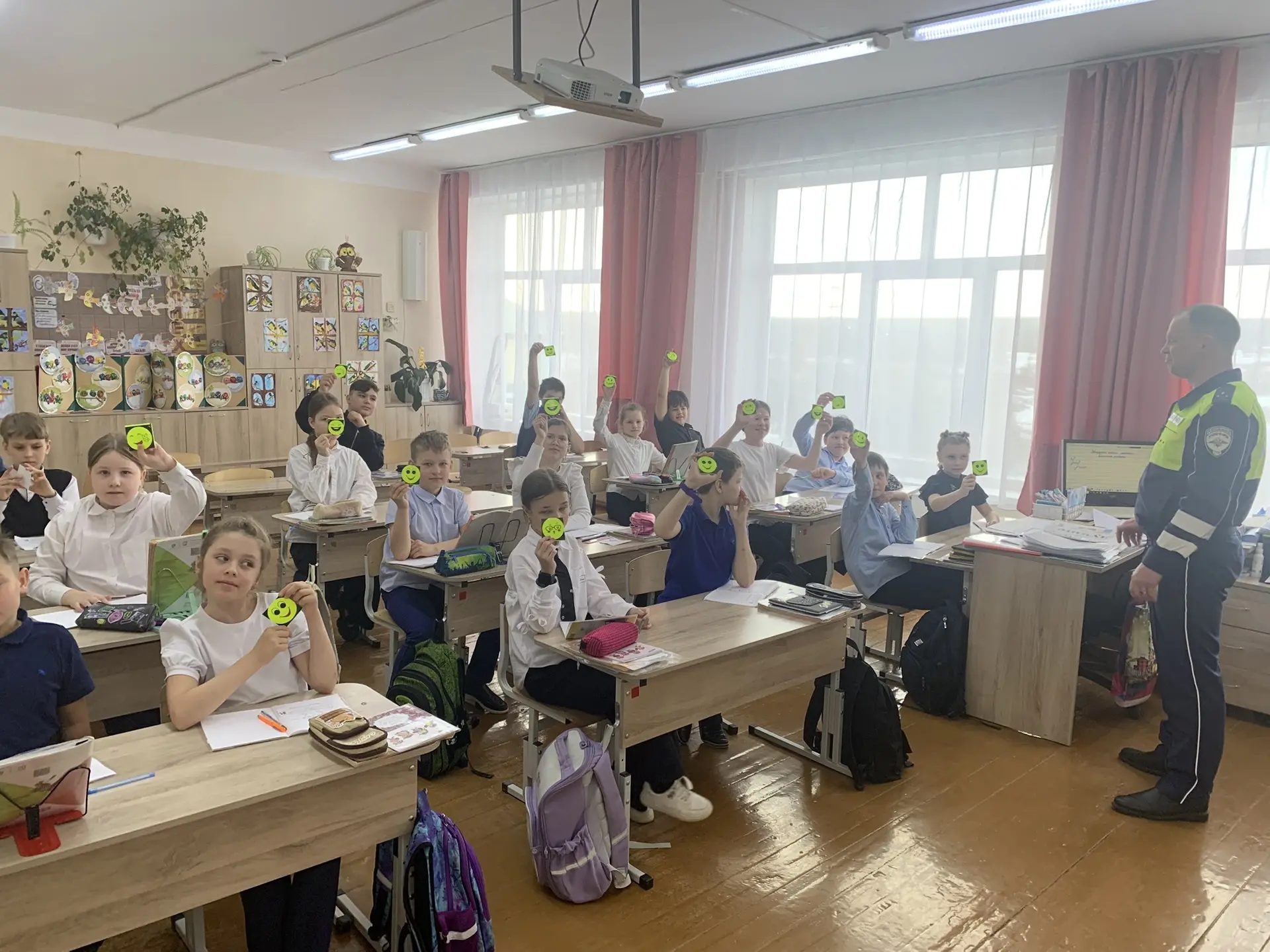 Особое внимание было уделено правилам безопасного перехода проезжей части и управлению велосипедами и самокатами. Школьники активно участвовали в беседе, задавали вопросы и делились своими историями. В завершение встречи школьникам подарили световозвращающие элементы и пожелали веселых и, самое главное, безопасных каникул!