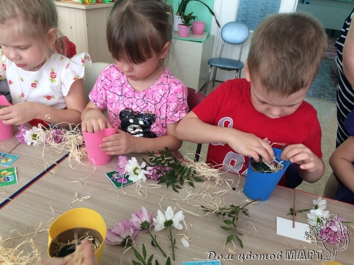 сделали красивые цветочные композиции в ярких горшочках для своих любимых мамочек!!!