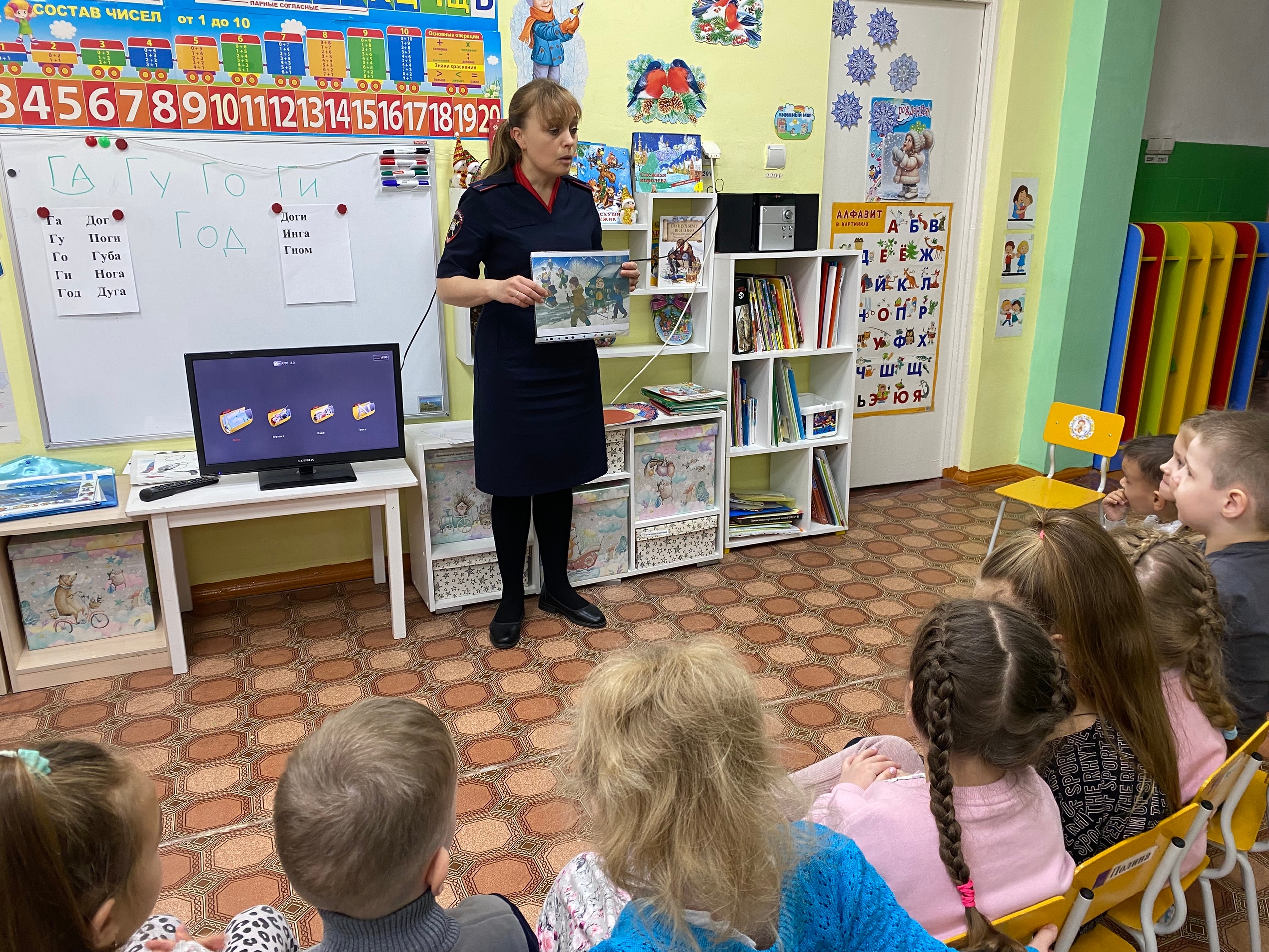 Сотрудники Госавтоинспекции проводят занятия по «зимней безопасности» с дошколятами в рамках профилактического мероприятия «Горка»