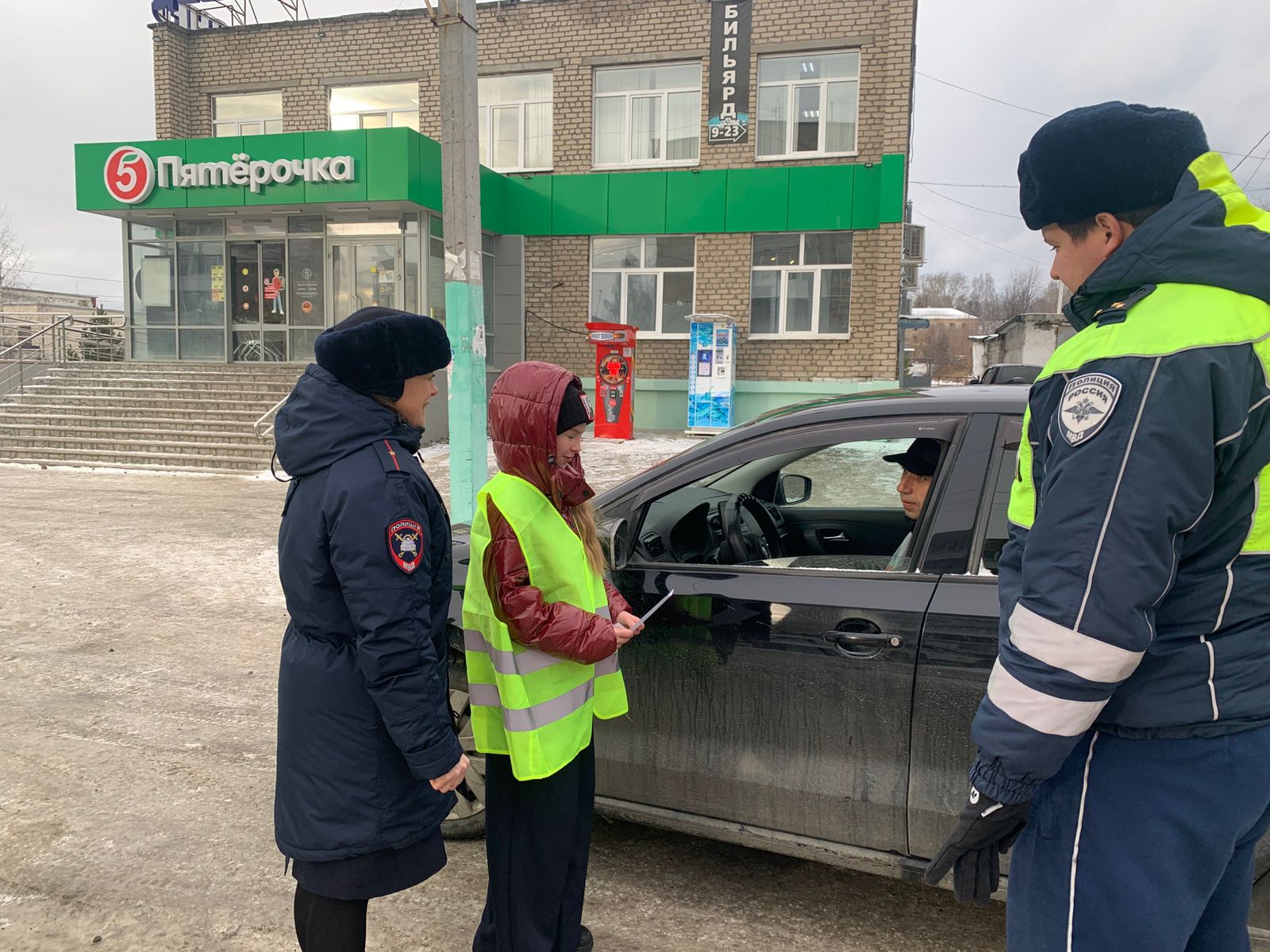 Мероприятие прошло на одной из оживленных улиц. Юные инспекторы дорожного движения трогательно обращались к водителям и вручали информационные памятки.