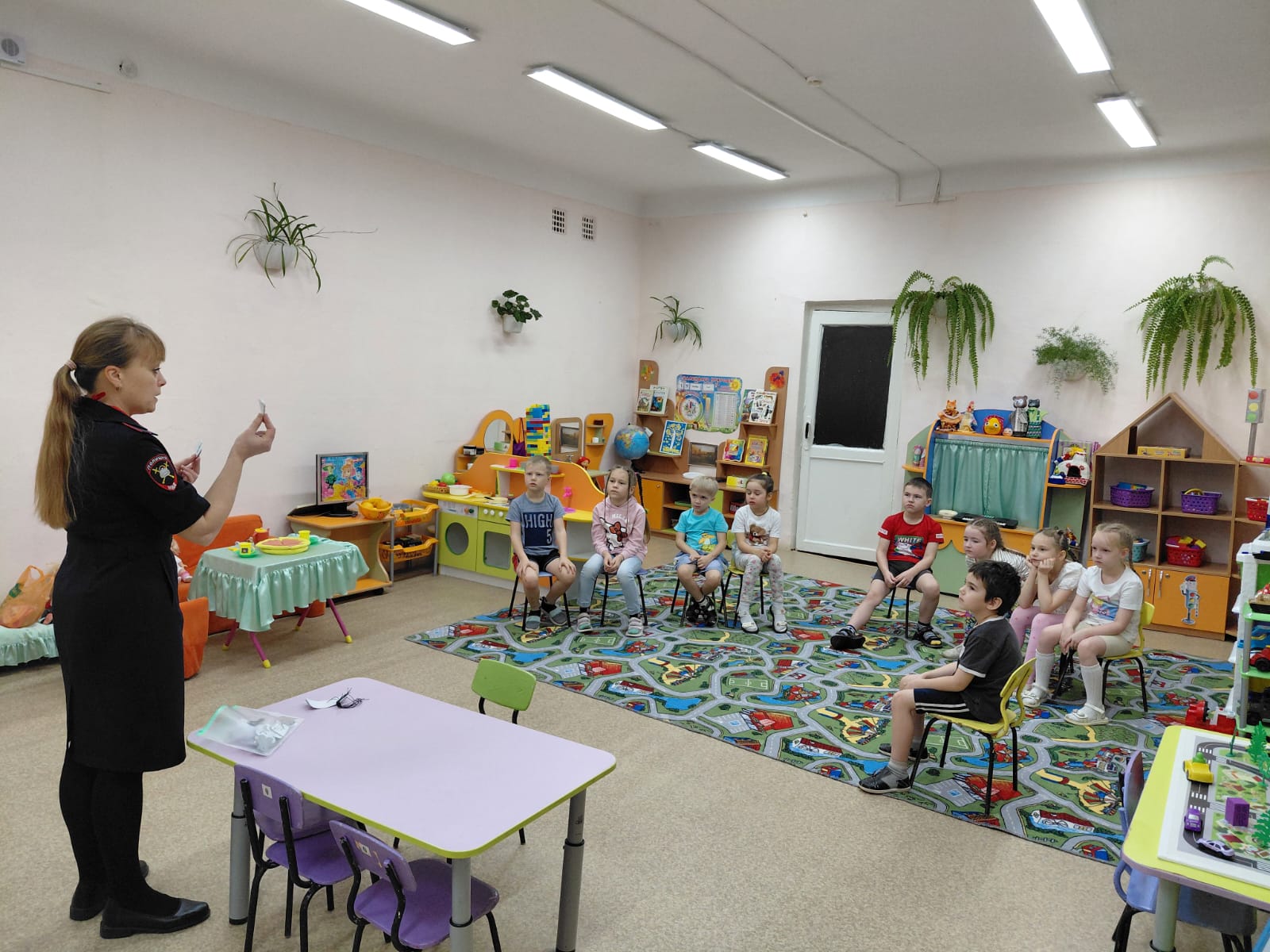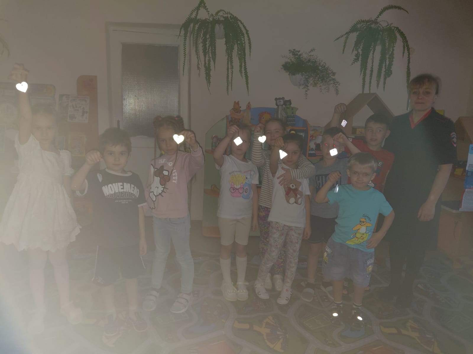 Особое внимание инспектор уделила теме безопасности в тёмное время суток. Дошкольники узнали, что каждый пешеход обязан иметь на одежде световозвращающие элементы, которые помогают водителям заметить человека на дороге.
