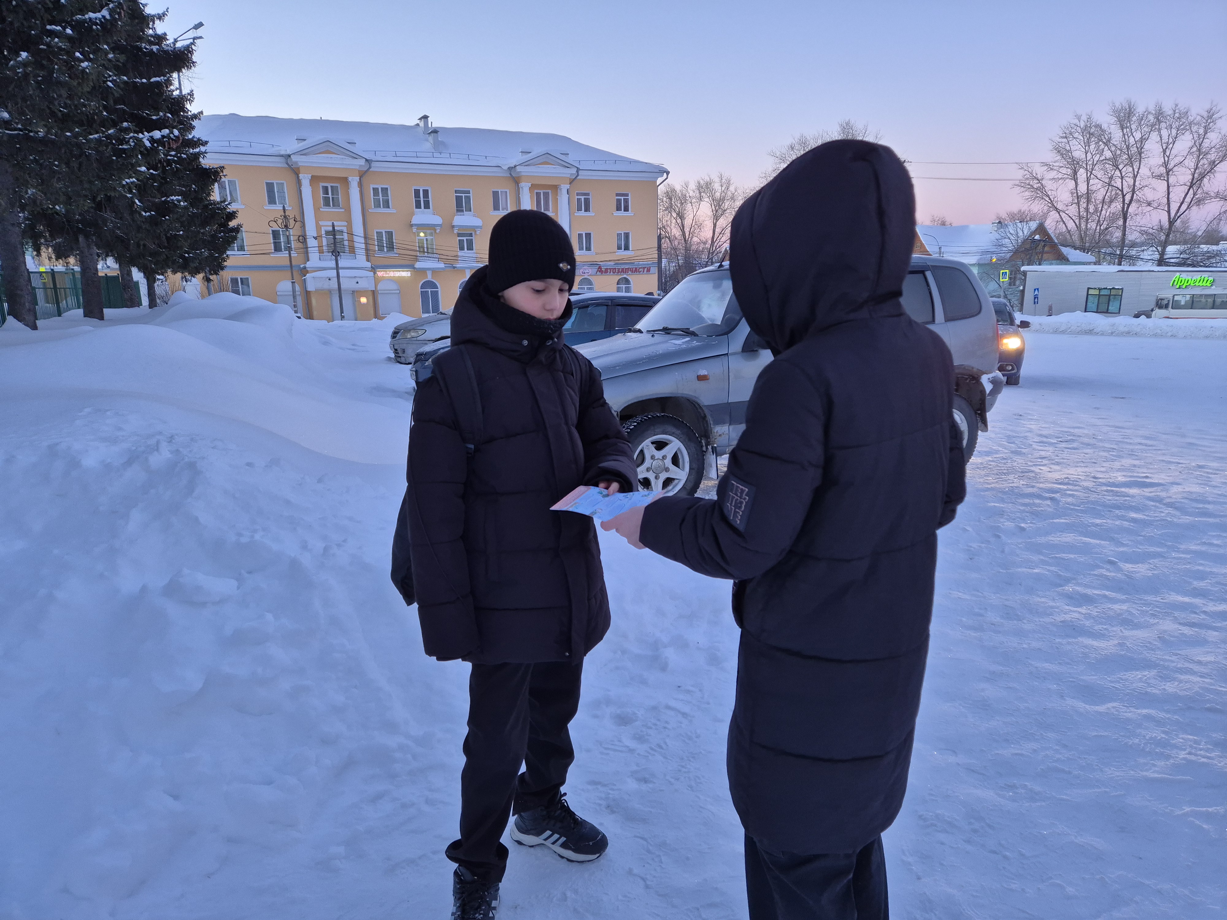 Организаторы акции напомнили ребятам о «дорожных ловушках», которые подстерегают пешеходов в зимний период: скользкая дорога, увеличенный тормозной путь автомобиля, сугробы, ограничивающие обзор.