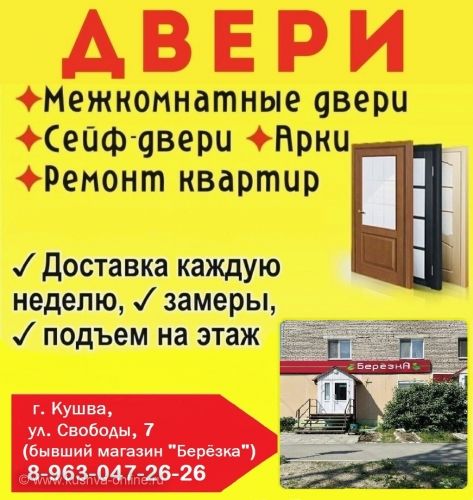 Продажа и установка Дверей и Арок: 🌀Межкомнатные двери: одиночные, двойные распашные, откатные двери одинарные и двойные, двери в кладовку. 🌀Входных сейф-двери: квартирные, в дом с терморазрывом, противопожарные двери, двери для стройки. 🌀Арки и арочные проёмы. Большой ассортимент дверей и фурнитуры Производим двери по индивидуальным размерам на Заказ |