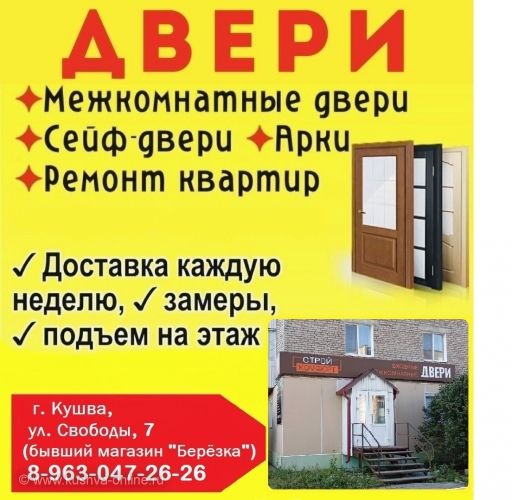 | Характеристики | Продам Продажа и Установка Дверей Большой ассортимент межкомнатных и Входных дверей и фурнитуры!!! 🌀Межкомнатные двери: одиночные, двойные распашные, откатные двери одинарные и двойные, двери в кладовку. 🌀Входных сейф-двери: квартирные, в дом с терморазрывом, противопожарные двери, двери для стройки. 🌀Арки и арочные проёмы. Производим двери по индивидуальным размерам на Заказ |