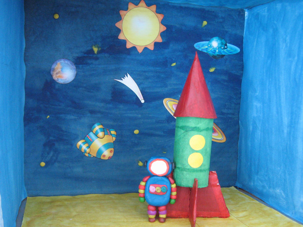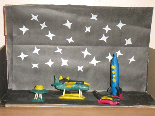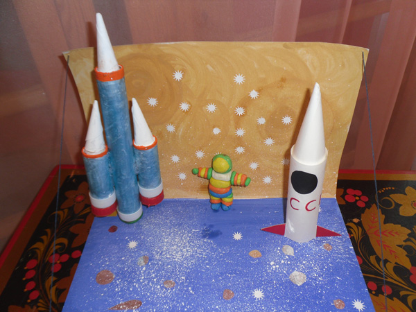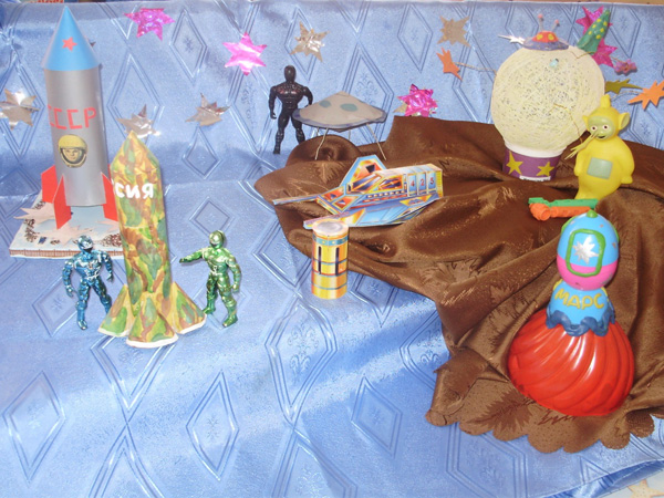 Макеты по космической тематике могут быть выполнены с помощью различных средств изобразительной деятельности (цветная бумага, картон, пластилин, бросовый материал и прочая атрибутика).