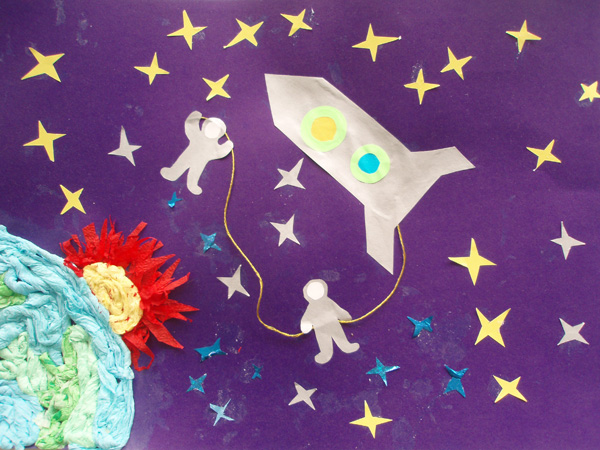 «Выход в открытый космос». Коллективная работа детей старшей группы. МДОУ №62.