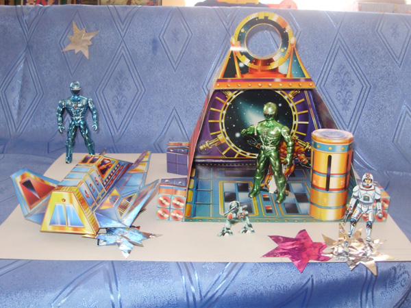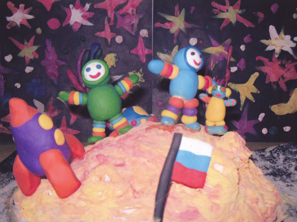 «В открытом космосе». Зульхиджин Данил 7 лет, Чепурина Соня 7 лет, Ведерников Тимофей 6 лет, Якимов Дима 7 лет. МДОУ №25.