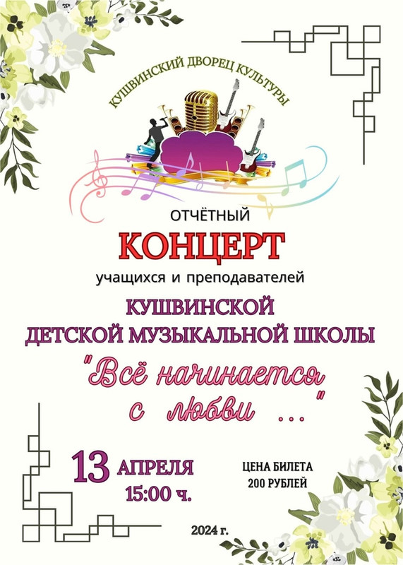 Ежегодный отчетный концерт является творческим отчетом, подведением итогов работы за учебный год. В концерте примут участие солисты и творческие коллективы музыкальной школы.